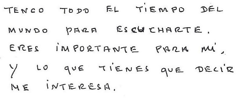 Tengo todo el tiempo del mundo para escucharte, eres importante para mí y lo que tienes que decir me interesa.