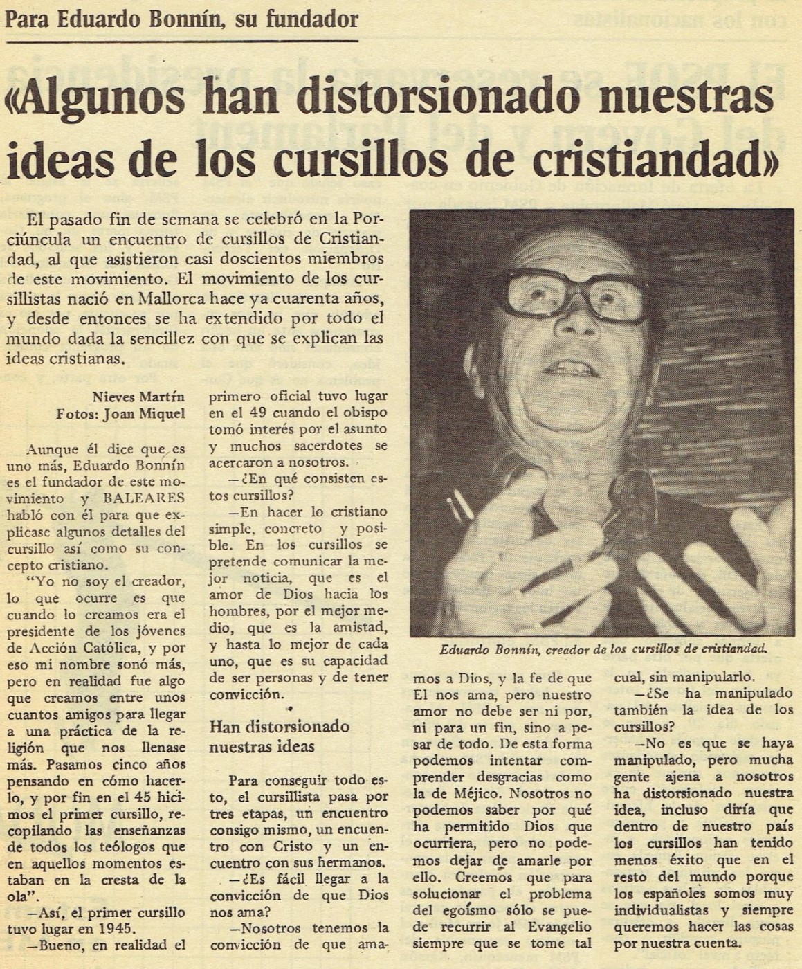 Nuestro fin es preservar y difundir el legado que Eduardo Bonnín Aguiló, fundador de los Cursillos de Cristiandad, dejó al mundo.