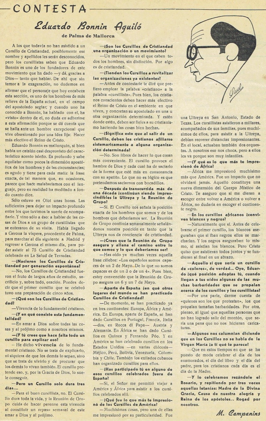Nuestro fin es preservar y difundir el legado que Eduardo Bonnín Aguiló, fundador de los Cursillos de Cristiandad, dejó al mundo.
