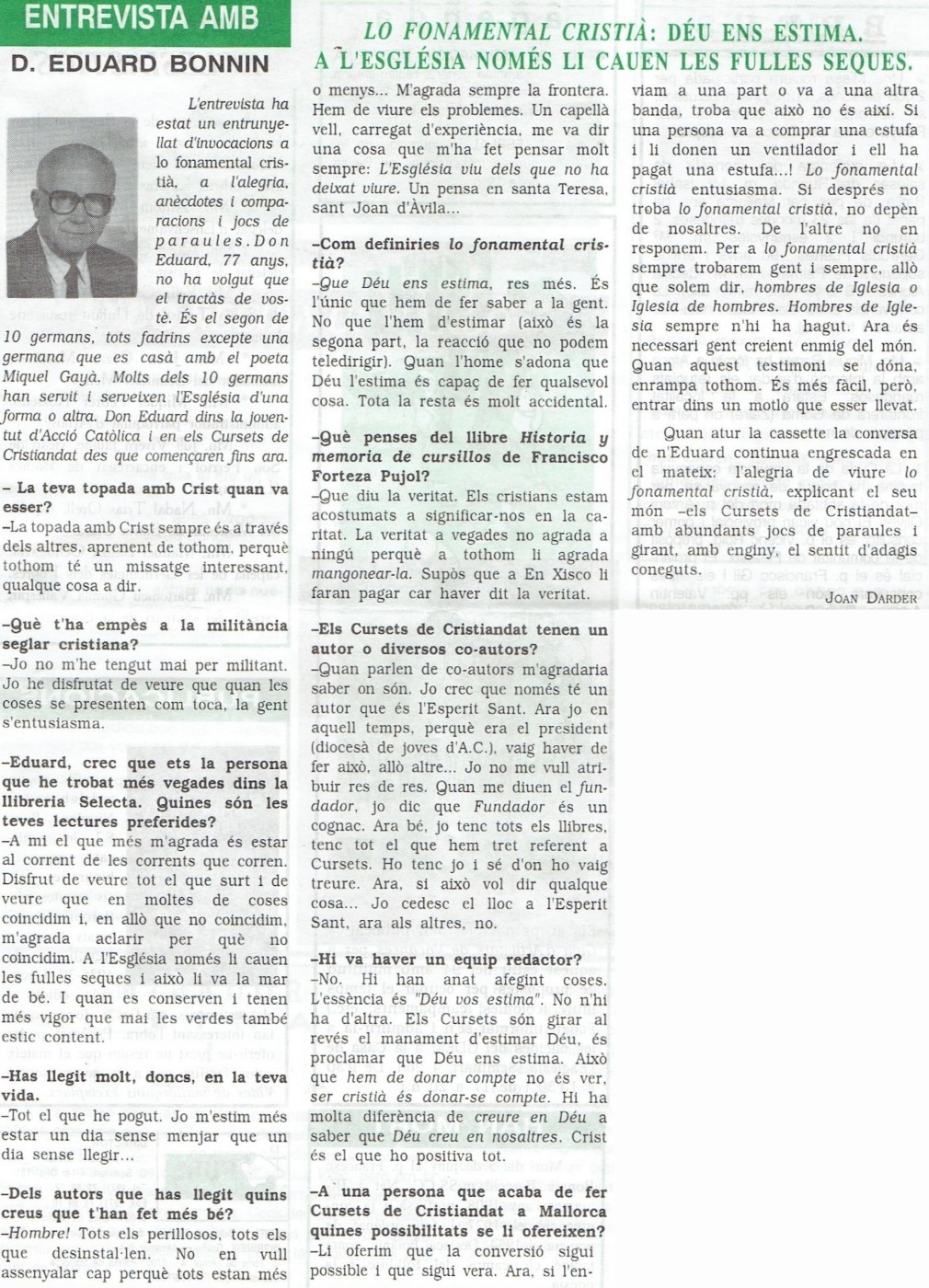 Nuestro fin es preservar y difundir el legado que Eduardo Bonnín Aguiló, fundador de los Cursillos de Cristiandad, dejó al mundo.